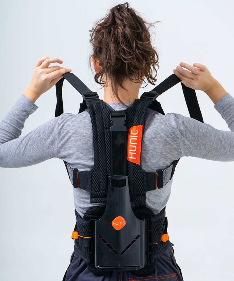 L’exosquelette Hold a été développé pour les travaux plus légers qui nécessitent peu ou pas d’assistance au levage. Il se compose d’une ceinture avec une attache dorsale qui y est reliée.